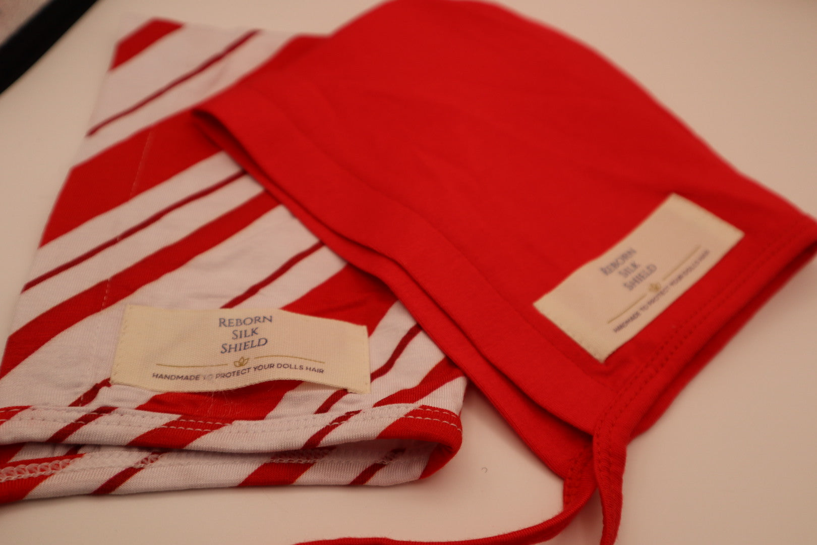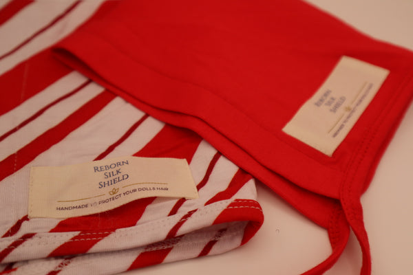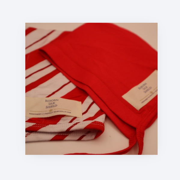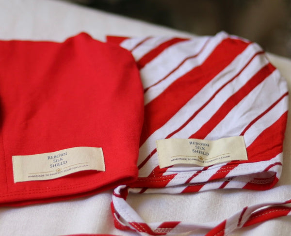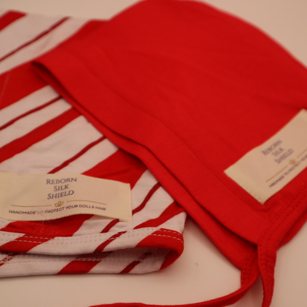 Step into the magic of the holidays with our limited-edition Candy Cane Lane Silk Shield Set! This festive bundle includes two Newborn-size Reborn Silk Shields, designed to protect your doll’s hair with ultra-soft, eco-friendly bamboo silk — and wrapped in cozy holiday charm.